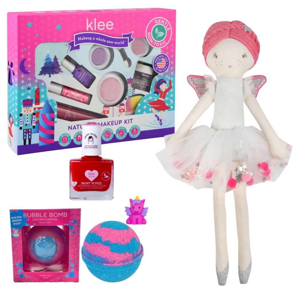 Finally, for the kid in your life who loves beauty and glam we have lots of options. We have a variety of all natural play make up and nail polish from Klee Kids. This season we have a large kit that includes everything a young diva could desire: makeup, nail polish, body glitter, and lip balm all in one set. Or grab a single nail polish or Two Sisters Bath Bomb to throw in a stocking. You can also up the bling factor with a necklace from Pop Cutie (available in store), or clip on earrings from Girl Nation (available in store). And what girl could resist one of the gorgeous dolls from Albetta, new to the store this fall. I love the bright pink hair and fairy stylings of Neon Fairy Linen Doll. Or maybe you prefer the cozy stylings of the Audrey Linen Doll in her fair aisle sweater and skirt? Either way, a little one in your life is sure to love any of these beautiful new dolls.